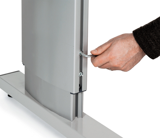 Průmyslový pracovní stůl s nastavením imbusovým klíčem se nejlépe hodí tam, kde je výškové nastavení potřeba jen zřídka. Jde o nejlevnější, ale také nejpracnější metodu nastavení výšky stolu.