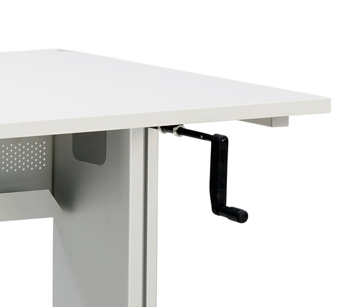 Ručně nastavitelný pracovní stůl je vhodný pro pracoviště, kde se výška nastavuje pouze jednou nebo dvakrát denně, např. při střídání směn. Nastavení výšky pomocí ruční kliky je jednodušší než u modelů s nastavitelným imbusovým klíčem, ale není tak rychlé a snadné jako u elektrických pracovních stolů.