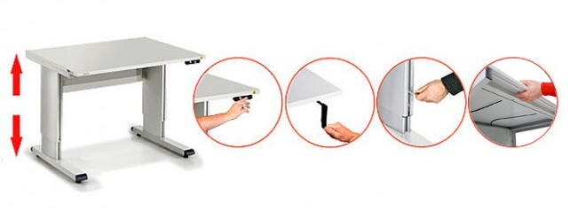Elektricky nastavitelný pracovní stůl umožňuje během pracovní směny několikrát změnit polohu, protože ji lze snadno a rychle upravit pro každého zaměstnance a pro různé pracovní polohy. Elektronické nastavování se využívá i u nižšího prahu a častěji se využívá možnost výškového nastavení.