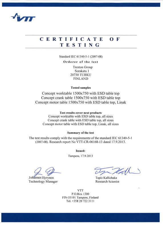 ![]() Certifikát schválení ESD Všechny ESD výrobky splňují požadavky normy IEC 60340-5-1 |