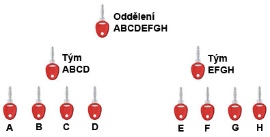 Serializace identických zámků Každý člen týmu potřebuje jen jeden klíč pro přístup ke všem zásuvkám a skříňkám produkční jednotky. Hlavní klíč otevírá všechny zásuvky a skříňky z celkové produkční jednotky a může být také serializován. |