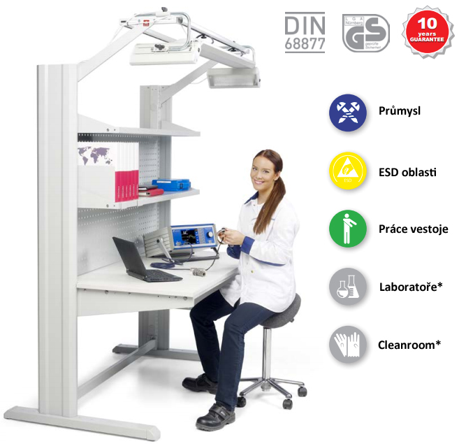 * Pro cleanroom (klasifikace 3) a laboratoře jsou dostupné židle pouze na základě požadavku zákazníka. Kontaktujte nás pro bližší informace.