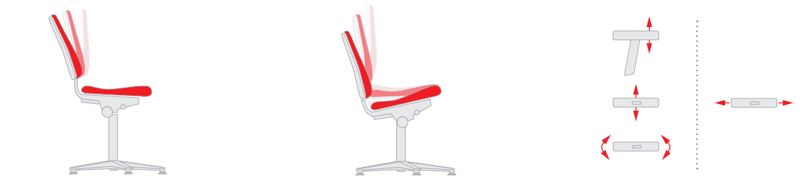 Trvalý kontakt opěradla Sleduje pohyby horní části těla a zajišťuje, že záda vždy zůstávají v kontaktu s opěrkou. Je ideální pro lidi, kteří se musejí často předklánět, např. kvůli malé vzdálenosti mezi očima pracovištěm (př. v přesném strojírenství nebo v laboratoři). |